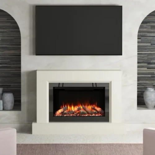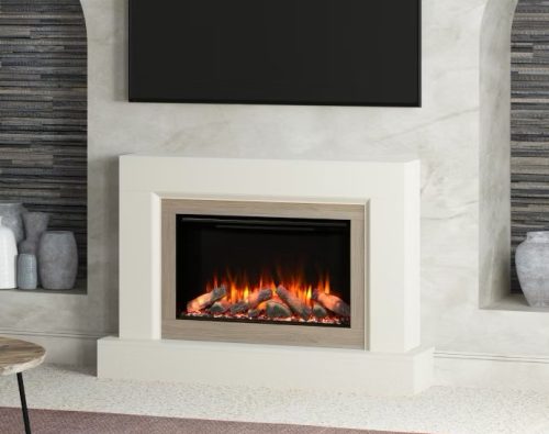 Available in a beautiful Dune colour, there is a choice of Nightfall, Black Nickel or Fossilwood trims to complement the fire.