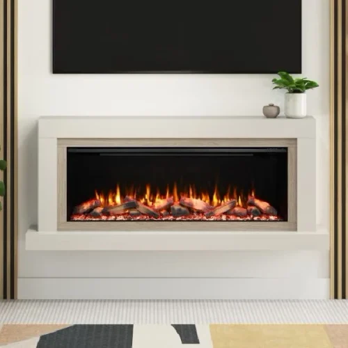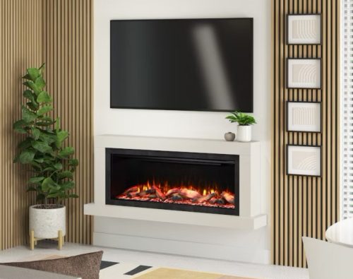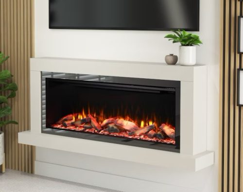 A simply beautiful design which really makes a statement, the Ornella electric suite is a 67″ fireplace designed to bring a sophisticated yet inviting warmth into your home. With its sleek Dune painted timber and contemporary styling, the Ornella serves as a stunning focal point, seamlessly fitting into both modern and classic interiors. It is offered with a choice of 3 trim colours to complement the fire – Fossilwood, Black Nickel and Nightfall.