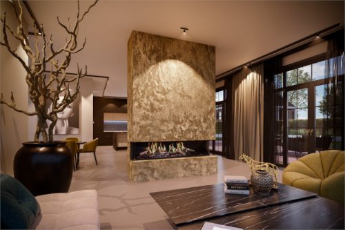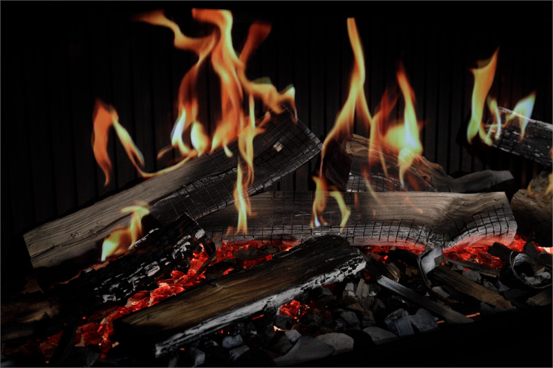 The bottom of a Virtuo fire is covered with natural looking coals and chips with glow stones. Together with the beautifully crafted log set and the unique Eco Glow technology on the burner bed, the fireplace really comes to life. Determine your flame as well as the frequency, light intensity and colours of the glow bed for the ultimate fire experience at home.