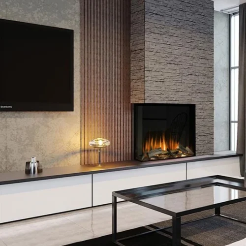 With 6 pre-set flame animations to choose from as well as 6 solid colour effects, the E-lectra has a wide range of customisation and versatility. If this isn’t convenient enough, you can also control the fire through the e-smart cloud app, downloaded onto a smartphone or tablet, along with compatibility with Amazon Alexa and Google Assistant. Installation is a breeze, designed to be built into a wall or fireplace, making it a great choice for new construction and renovations. The fire also features a glass front that stays cool to the touch, making it safe for families with children and pets.