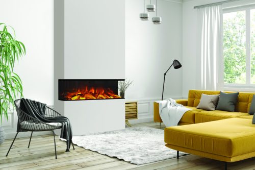 The Evonic E1250 built-in electric fire features the ever-popular Evoflame flame effect, adding a realistic flickering effect to the LED-powered bed. A 1250mm wide glass front provides a stunning landscape display, two and three sided conversion panels are included as standard allowing for a more creative installation.