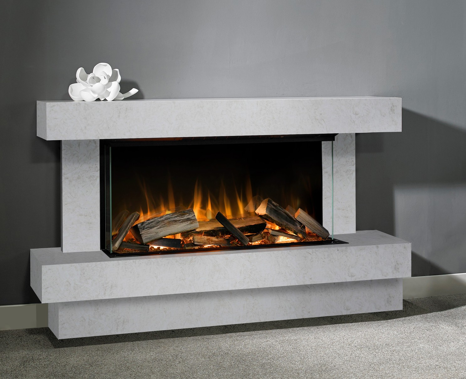 The three sided glass allows you a full view of the fire from wherever you are sitting in the room and the addition of coconut husks and sparkling gemstones in the fuel bed mimics the real burning embers from a log fire.