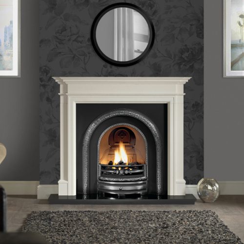 Instantly recognisable with a striking, tiered feature across the mantel chest extending down the leg, the imposing Bartello from Gallery is a fireplace surround that will definitely make an impact in any home. Taking inspiration from Edwardian designs, this exquisite surround will form an integral focal feature in your home. Crafted from natural Aegean limestone with a tiered feature across the chest and legs and intricate edging on the top shelf, the Bartello has an overall shelf width of 54″ (1370mm), meaning it will work well in any standard sized room.
