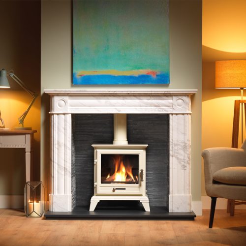 The Chiswick has a mantel shelf width of 1420mm (56″) and can be combined with most cast iron insert or flat, marble or granite sets.