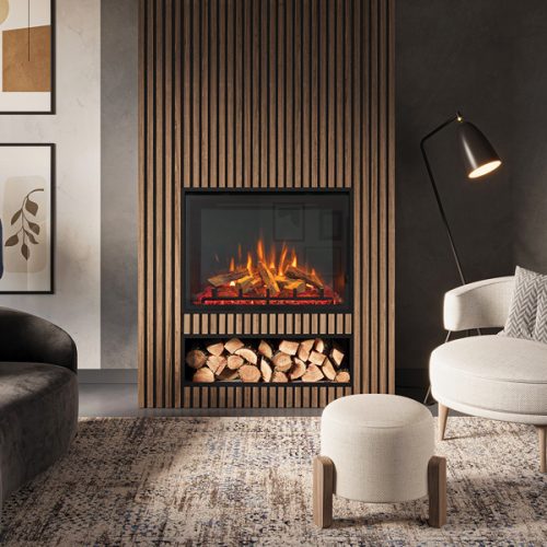 - Chromalight LED Technology – Customise flames and embers with eight colour options and adjustable intensities, creating a dynamic, lifelike fire display