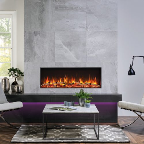 - Chromalight Ember Bed-Up Lighting – Choose from 13 different vibrant colours, which can each be fine tuned with five brightness levels to illuminate the realistic fuel bed. Alternatively, you can opt for the gradually changing Spectrum mode, which cycles through each colour.