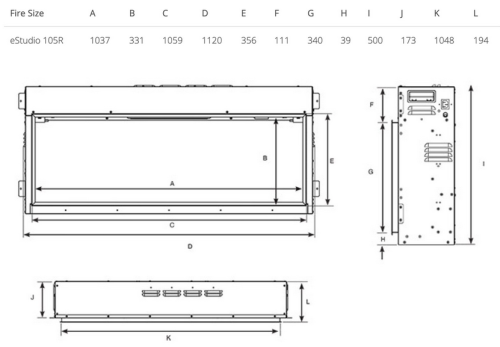 Dynamic ember effects – To create the illusion of real embers, the eStudio’s fuel bed is made up of blackened glass media, dusted with a realistic ash like coating. When lit from below by the Chromalight system, the fuel bed’s media glows and darkens in different areas, seemingly at random for a ‘living’ ember look.