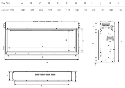 Dynamic ember effects – To create the illusion of real embers, the eStudio’s fuel bed is made up of blackened glass media, dusted with a realistic ash like coating. When lit from below by the Chromalight system, the fuel bed’s media glows and darkens in different areas, seemingly at random for a ‘living’ ember look.