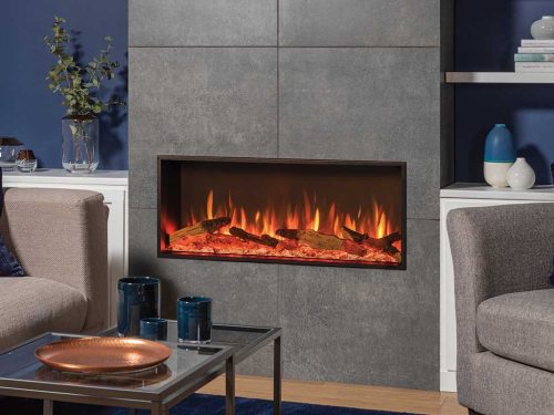 A choice of true to life glowing logs – For the utmost realism, sections of the log effects glow when the fire’s Chromalight flames and ember bed are activated, just like real burning logs. All eStudio sizes come with a hand detailed log effect. For something a little different, an optional Silver Birch log effect creates an alternative but equally captivating display.
