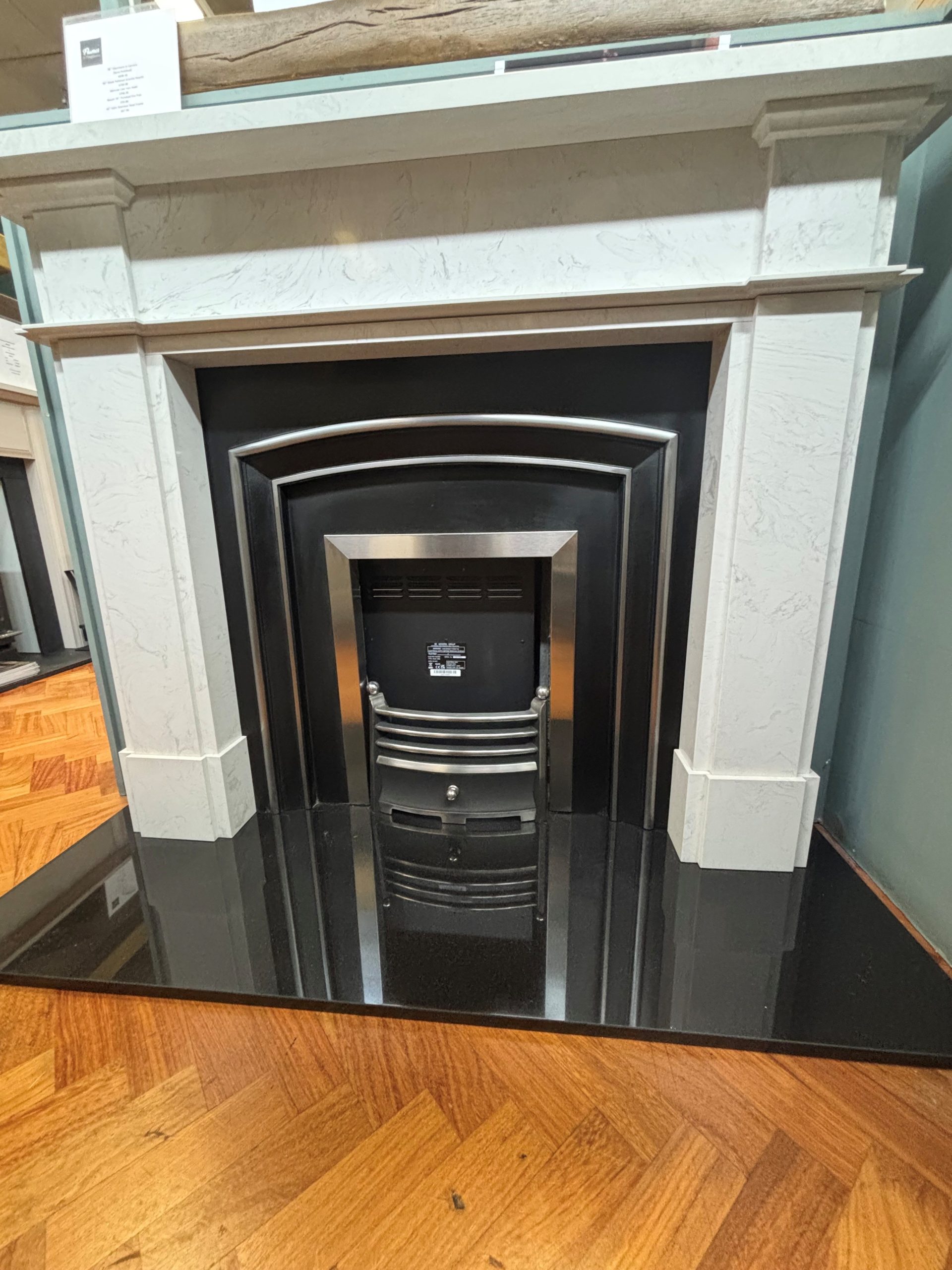 58″ Mourne Glenmore Surround in the stunning semi polished Carrara