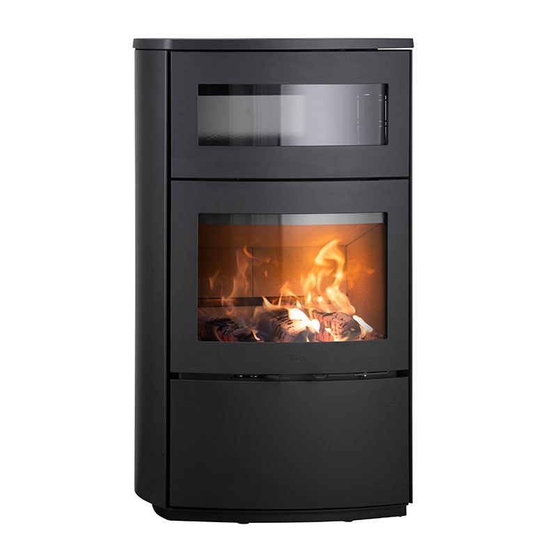 Heta’s large wood-burning stove the Scan-Line 1000 can accommodate large pieces of wood up to 50 centimetres. The Scan-line 1000 is robust without filling the room. The stove is built in heavy steel and cast iron, it has almost unmatched possibilities for collecting and releasing heat. If you love freshly baked bread, choose the baking oven model and exploit the heat more, by baking your favourite dishes.