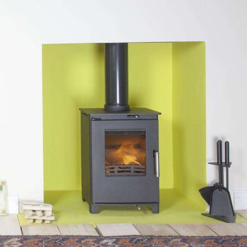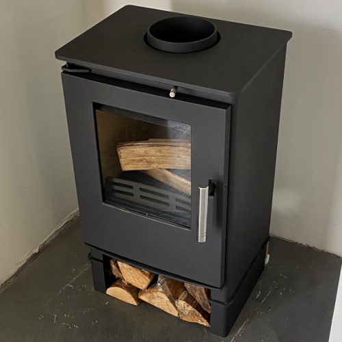 This small stove has a cast iron door with a stainless steel milled handle and milled air control levers. It fits snugly into the most compact of spaces, perfect for if you’re limited on space. Its compact size makes it ideal for smaller rooms with its 4kW output. Don’t let its size fool you, this stove can deliver 3-4kW of heat per hour for only 700g of wood.