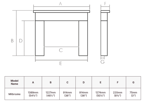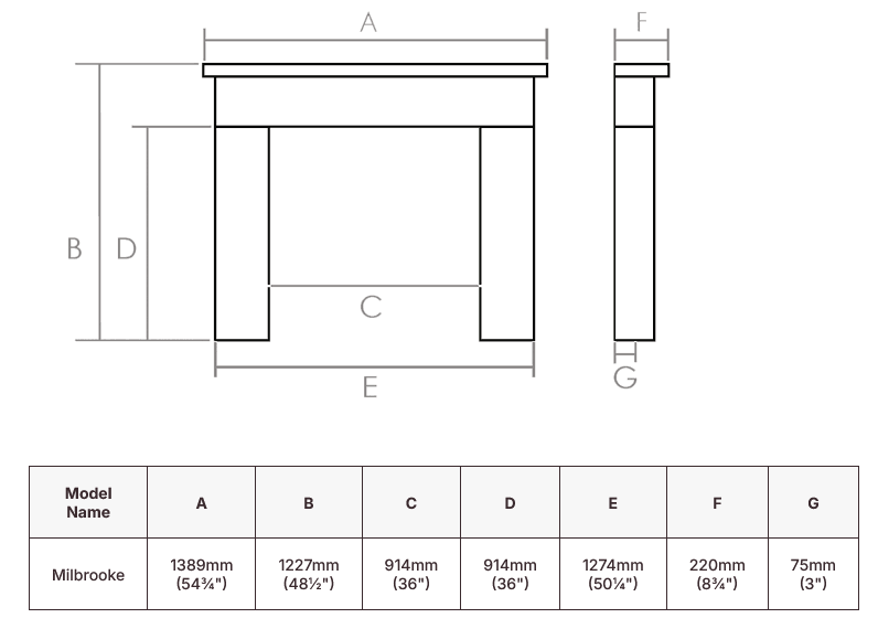 Taking inspiration from classical designs, the Milbrooke is an elegant mantel with geometric lines and classical proportions that manages to work equally well in both period properties and more modern homes. With a mantel shelf width of 56″, it will create a spectacular focal point in most rooms and with a standard internal leg opening it is compatible with standard back panels.