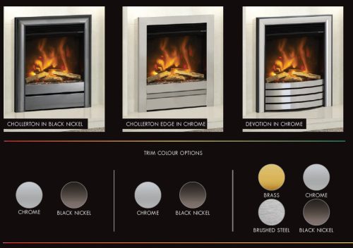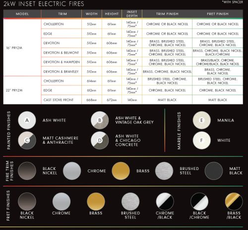 Elgin & Hall are now offering their cutting-edge ‘Pryzm’ flame technology in a standard 16″ electric fire format. Designed to be fitted into a standard back panel opening of a fireplace surround, this model includes the hugely popular Chollerton contemporary fascia in a choice of finishes.