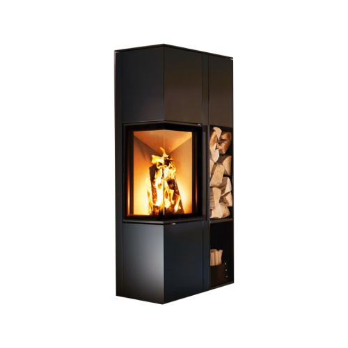 Precise lines viewed from two sides. The Piko L wood burning stove is perfect for open living spaces and offers a view of the fire from different perspectives. The clear and reduced lines of the stove shape its angular character. With its integrated thermal storage medium, it gives you lasting warmth.