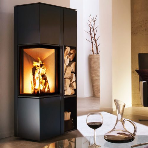 Piko L is a tall 4-sided wood stove with sharp corners and a revealing 2-sided viewing window. There is also the option of a wide or slim wood storage attachment. It is available in a choice of 3 colours: Nero, Titan and Pearl and has a considerable 5.9 kW heat output with 80% efficiency.