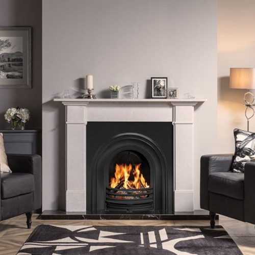 Elegantly crafted to exacting standards, the Classical Arched insert includes a variety of both period precise reproductions and history inspired designer style. It also features a cast relief baffle plate to the rear of the fire with an attractive coat of arms motif.