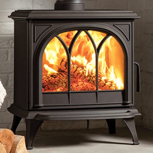 The Huntingdon 30 can be supplied with a decorative tracery door or plain door and is painted in a classic matt black finish.