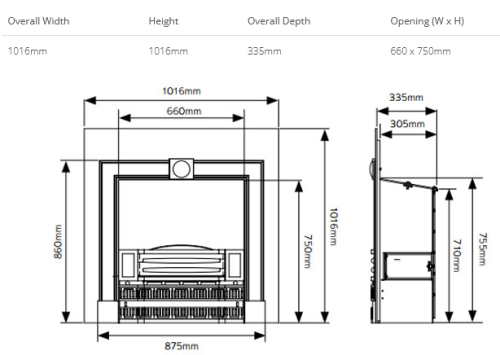 These complete fireplaces feature a grate and built-in fireback and are designed to fit into a 36′ by 36′ (915mm x 915mm) opening. Suitable for solid fuels such as wood, coal and approved smokeless fuels.