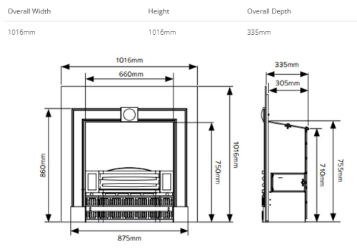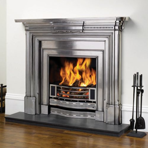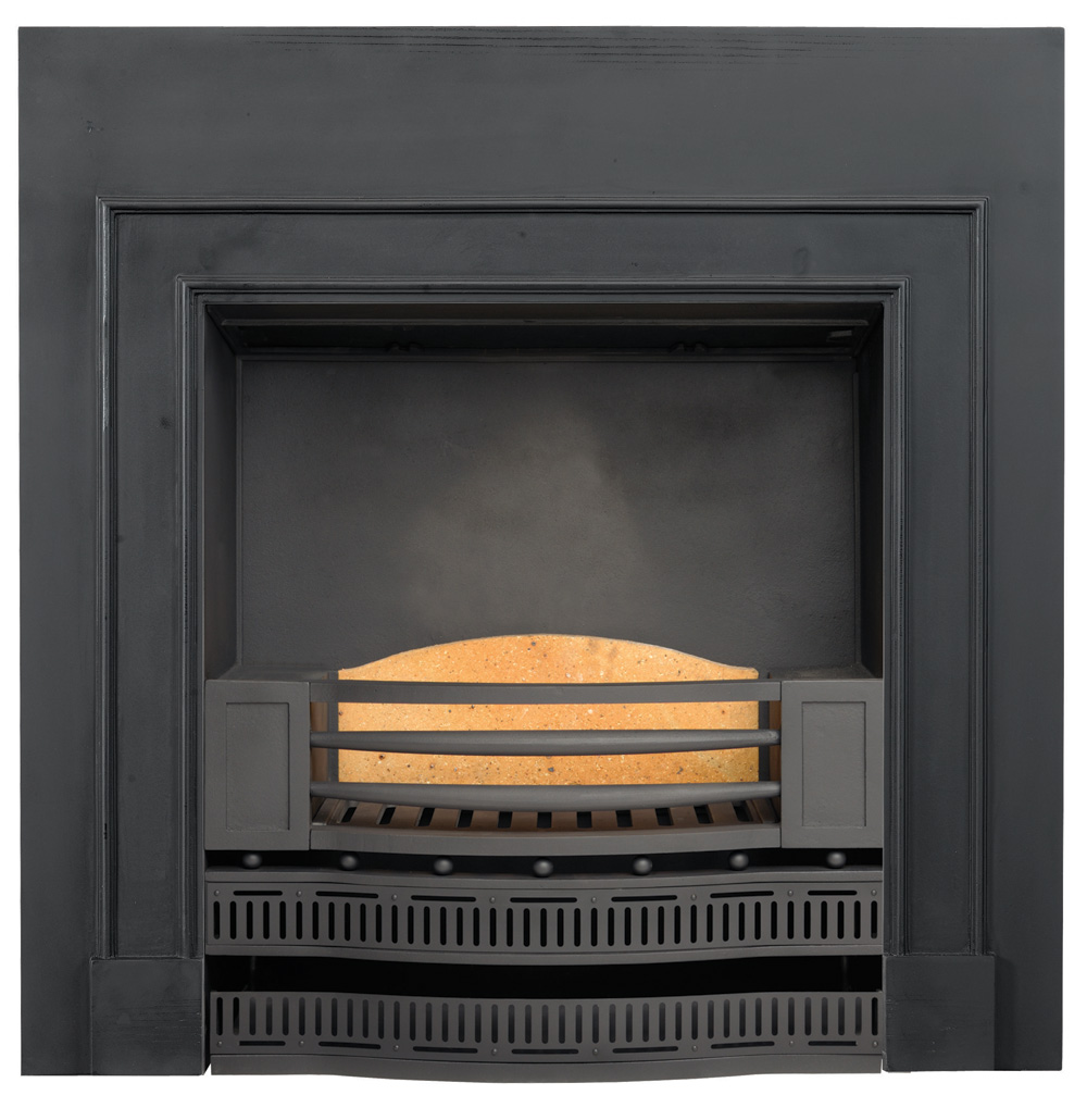 These complete fireplaces feature a grate and built-in fireback and are designed to fit into a 36′ by 36′ (915mm x 915mm) opening. Suitable for solid fuels such as wood, coal and approved smokeless fuels.