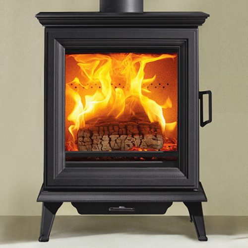 Impressive energy efficiency ratings of up to 78% on the dedicated wood burning model and up to 80% on the multi-fuel version. Nominal heat output rating of 5kW make the Stovax Sheraton 5 ideally suited to standard sized rooms.