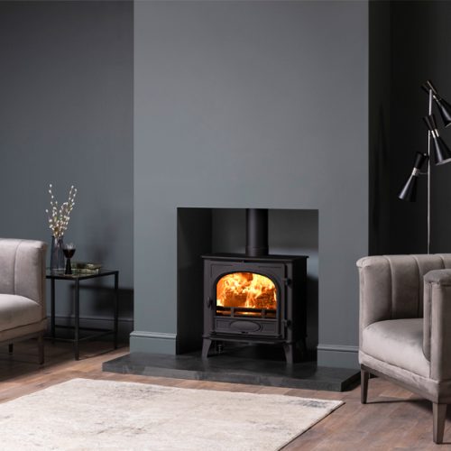 This wide format Stockton prioritises flame visuals with its landscape burn chamber and expansive viewing window. Thanks to its shallower depth, this versatile 5kW stove suits a broad range of room sizes and fireplaces, with the impressive flame picture of a much larger model. Available as either a single or double door stove, it is also a multi-fuel appliance allowing you to burn either logs or solid fuels.