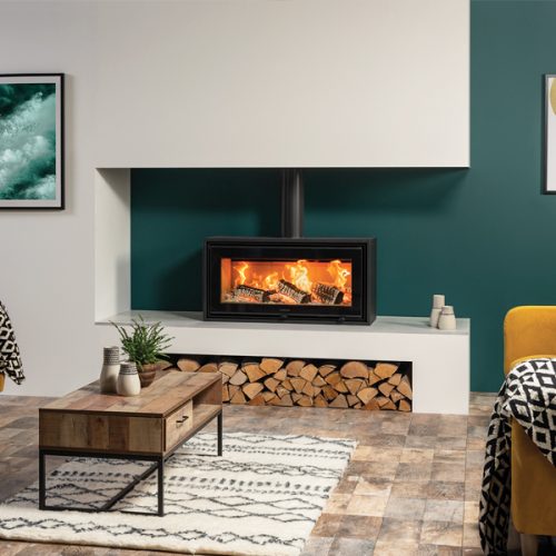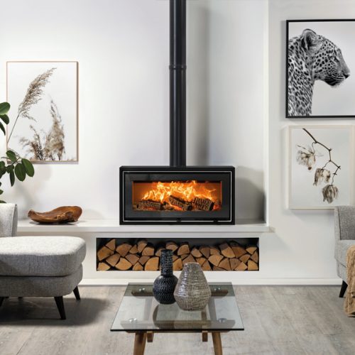 This cutting-edge, Freestanding log burner can either be installed in a fireplace chamber, freestanding against a wall, or mounted on a stove bench.