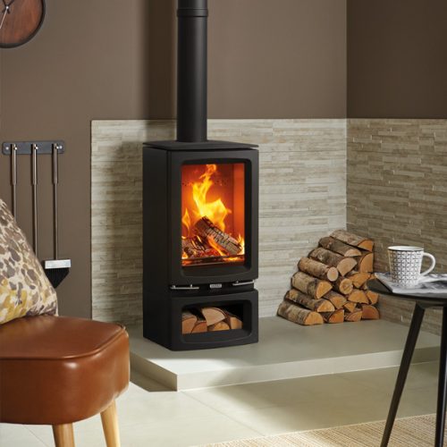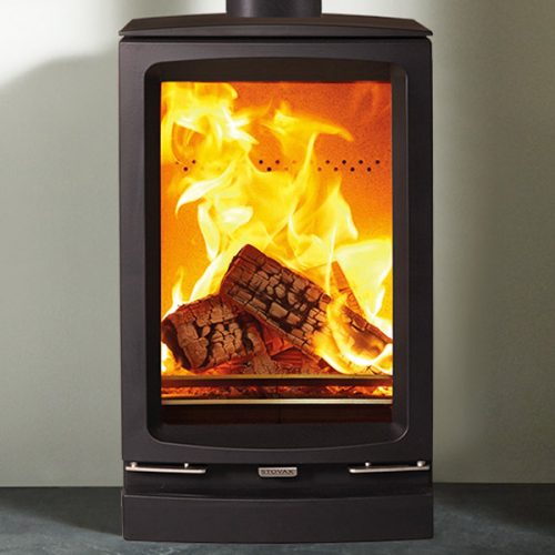 A highly advanced wood burning stove that meets the stringent Ecodesign targets for efficiency and emissions. The Stovax Vogue Small T Eco boasts a increased height of the fire box giving a stunning view of the flames. Available with the optional Plinth or Midline log storage bases.